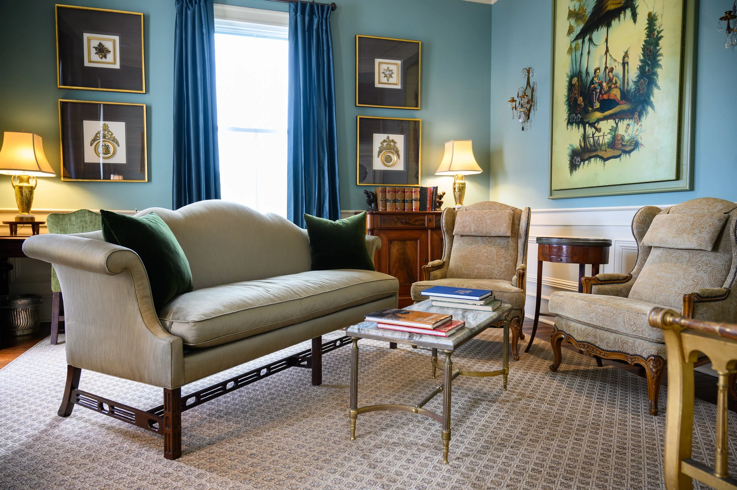 Two gorgeous bathrooms, one more a modern interpretation and other with period reproductions.